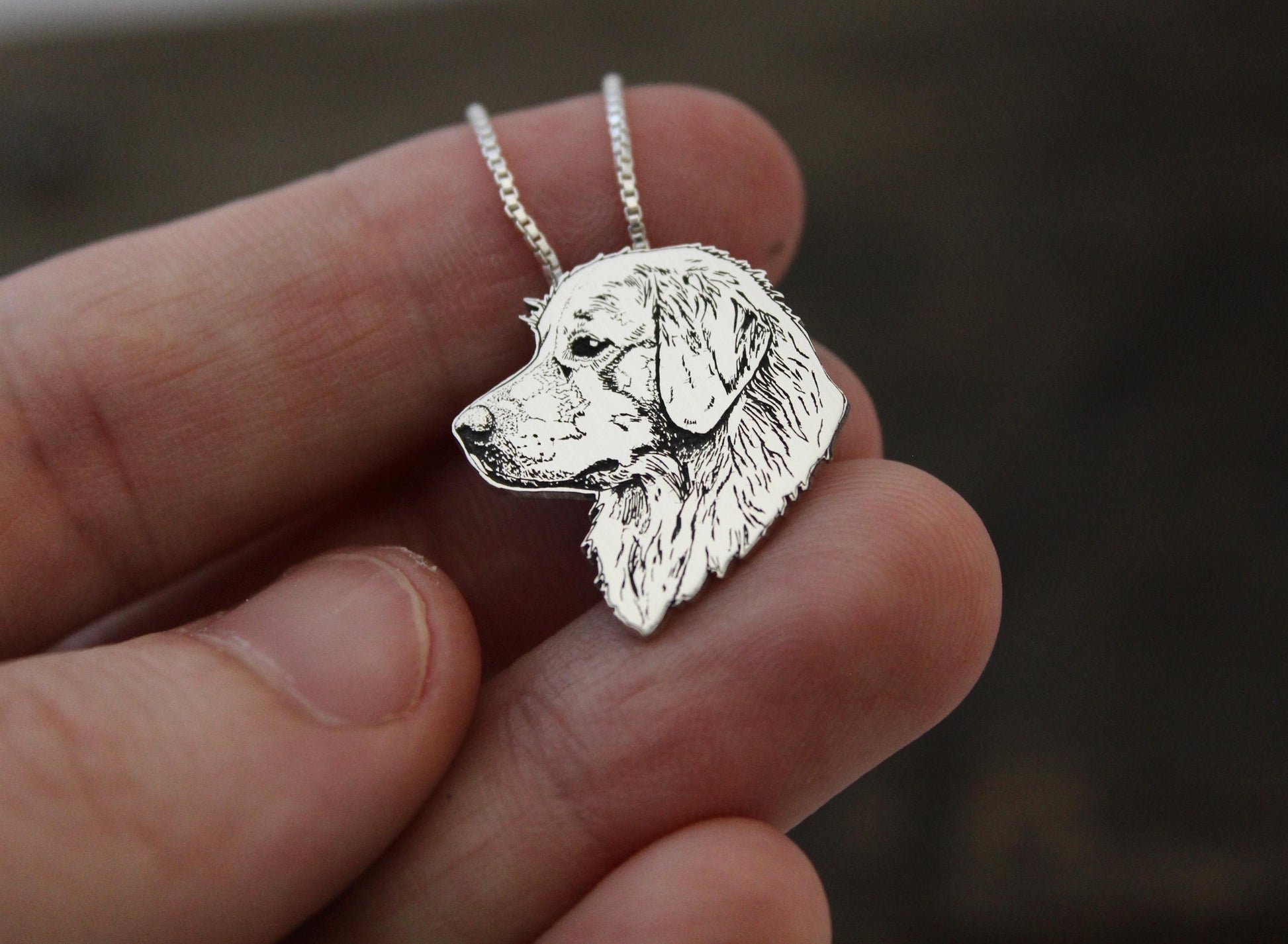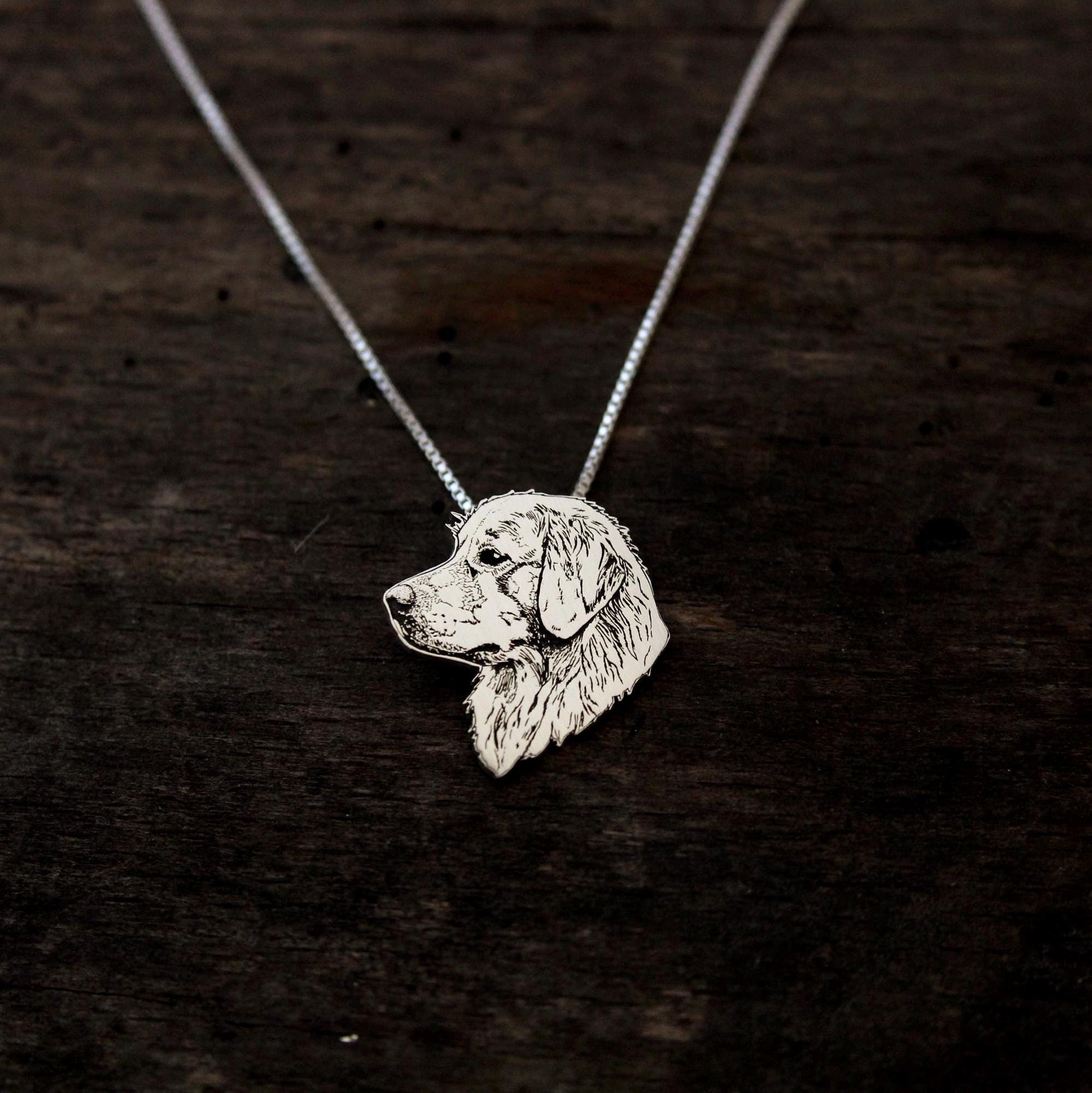 This beautiful original Sterling Silver Golden Retriever necklace is carefully crafted in my home studio, beginning with an accurate design, precisely cut to shape in-house and finished entirely by hand. Each piece is polished to a soft shine, highlighting every detail. Because every pendant is created one at a time, great care is taken to ensure a quality pendant and become a treasured keepsake.