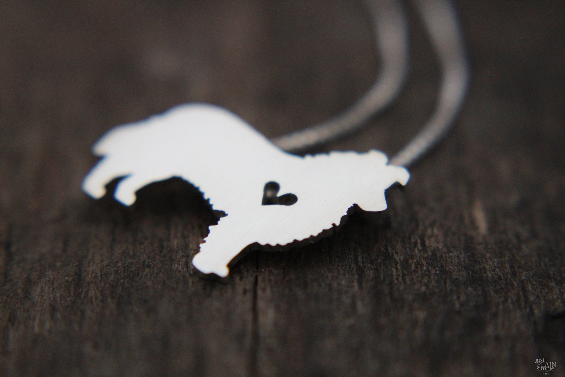 This Tiny Sterling silver Border Collie necklace is laser cut in my shop to give the best detail possible for every single item, as well as added personalization! Two bales are welded in place on the back to thread a chain through, then the piece is then hand finished and polished to a high shine. Each piece is made by me.