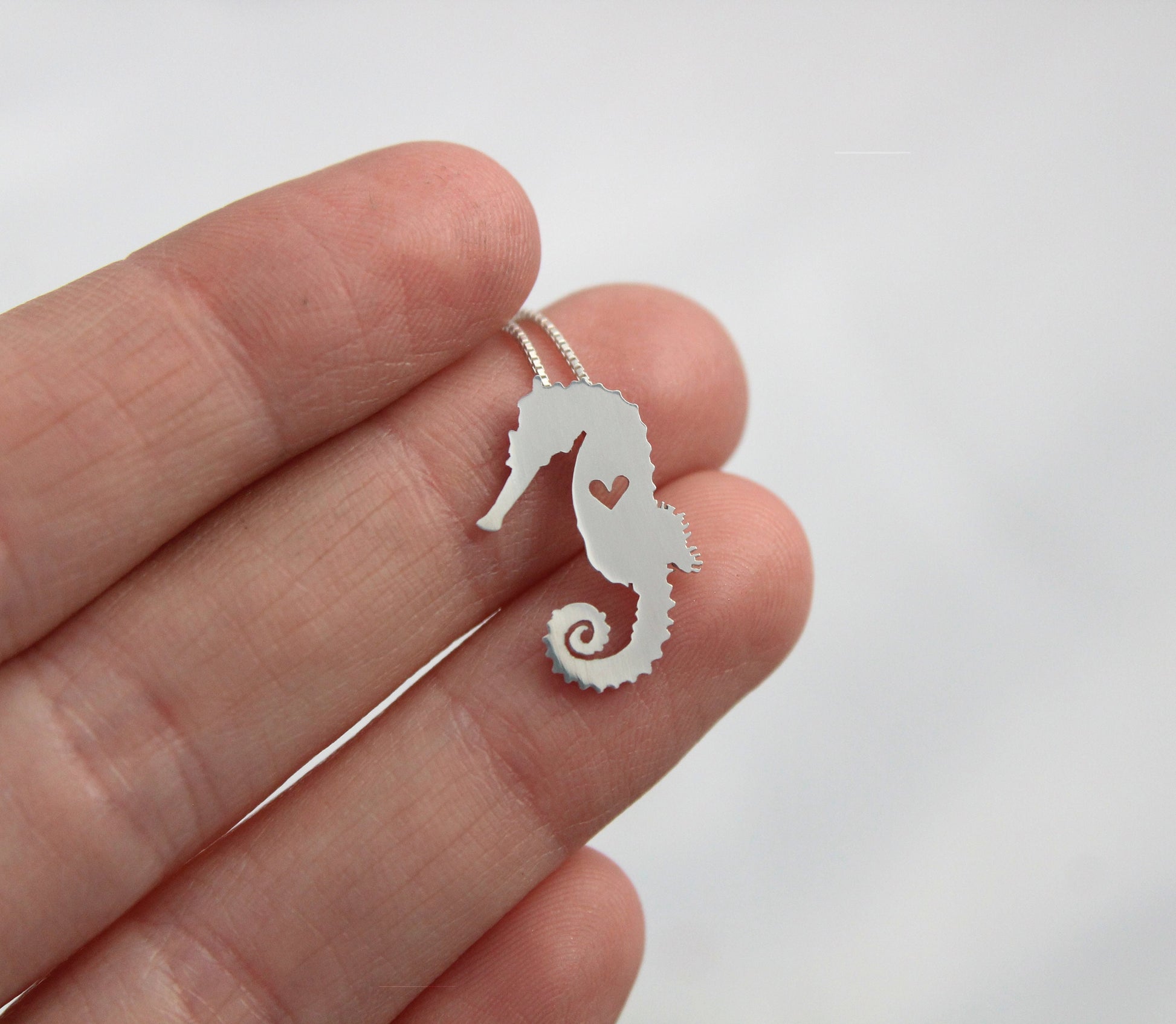 This delicate Sterling Silver Sea Horse necklace is carefully crafted in my home studio, beginning with an accurate design, precisely cut to shape in-house and finished entirely by hand. Each piece is polished to a soft shine, highlighting every detail. Because every pendant is created one at a time, great care is taken to ensure a quality pendant and become a treasured keepsake.